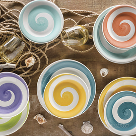 La spirale protagonista della linea Infinito. Un set piatti multicolor in ceramica sottosmalto, rigorosamente Made in Italy, che renderà la tua tavola divertente e allegra.