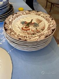 Set di 12 piatti lisci + 1 piatto da portata (51x40cm) vintage marcio Johnson Brothers England - Wild Turkeys