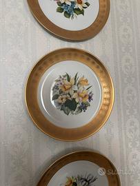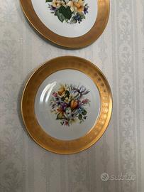 Piatti in porcellana bavarese Kronester Bavaria West Germany vintage pregiati. Linea Incisione Oro, bordo dorato e decori floreali.