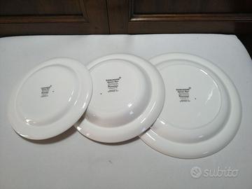 Questa prima parte è composta da 12 piatti piani grandi (diametro 26,5 cm), 12 piatti piani piccoli (diametro 20,5) e 10 piatti fondi (diametro 22,5).