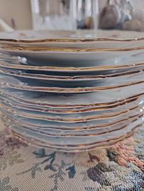 Vendo 12 piattini per dolce di Seltmam Weiden E. Bavaria Theresa con decorazioni dorate rappresentazione di un paesaggio di colore marroncino perfette condizioni mai utilizzati euro 45