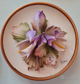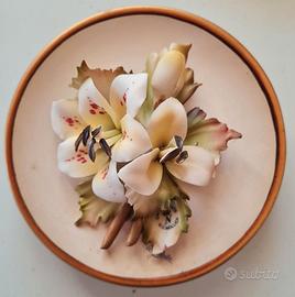 Ceramica Capodimonte - Mollica realizati a mano in Italia set di 6 piattini da collezione misura diametro cm. 12 fiori in rielievo da appendere o da esporre con i loro supporti inclusi oppure come bomboniere in perfetto stato molto belli e introvabili con certificato di origine utilizzati solo come esposizione confezione adeguata antirottura