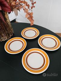 Set di 4 piattini da frutta/antipasto, originali anni '70. Un piattino presenta una sbeccatura sotto, come da foto