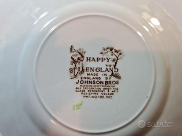 Vendo in blocco, sei piattini in ceramica inglesi realizzati da Johnson Bros, serie Happy England. Diametro 15,5 cm. Condizioni ottime, possibilità di visionarli. 35 euro Spedizione tramite corriere, a spese di chi compra.