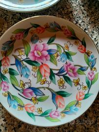 6 piattini con oggetto floreale in finissima porcellana