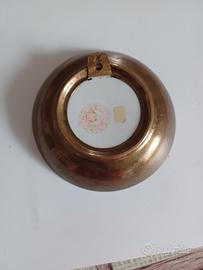 piattino decorativo in ceramica vintage cinese dipinto a mano bordo in ottone o metallo dorato misure in foto