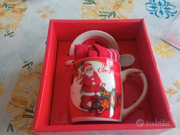 piattino e tazzina natalizia completo di strofinaccio veramente bello per fare un pensiero natalizio