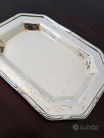 Piccolo piattino/vassoio in Sheffield, ottagonale; il bordo è decorato con un finto cordoncino applicato, su cui si alternano nodi stilizzati.