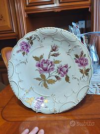 Bellissimo piatto vintage in porcellana Altenburg (Germania), con elegante decorazione floreale a rose nei toni del rosa e raffinati dettagli dorati. Il piatto presenta un bordo lavorato e leggermente smerlato, tipico dello stile classico europeo, ideale sia come oggetto decorativo che come elemento da collezione. 🔹 Marchio sul fondo: Altenburg (vedi foto) 🔹 Periodo: metà ‘900 circa 🔹 Materiale: porcellana 🔹 Decorazione: rose con dettagli oro 🔹 Condizioni: buone condizioni vintage, presenti lievi segni del tempo sul retro (visibili in foto)