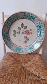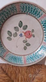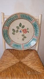 Bel piatto antico in terracotta grande dipinto a mano,c'è il nome del produttore sul retro come in foto ,questo piatto è molto antico era della mia bis nonna e grande con difetti minimi se lo vedette nemmeno su vedono e integro.tenuto con cura dopo tutti questi anni.Modello,colori e style come rappresentato in foto .