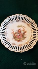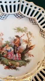 Piattino dolce porcellana traforata Paul Müller Selb Bavaria - Scena Galante - Oro zecchino"