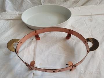 piatto di portata in porcellana con telaio in rame Pillivuyt. 2 macchie nel rame come da foto vendo a € 22.00 poco trattabile