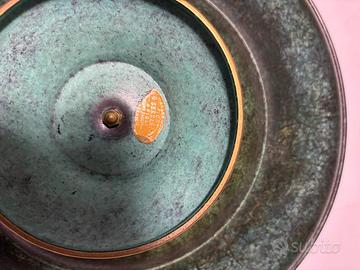 Piatto centro tavola in ottone diametro 34cm, h=8cm, con granchio decorativo sul bordo. Creazione di argenteria Fiori galleria Vittorio Emanuele Milano degli anni '60.