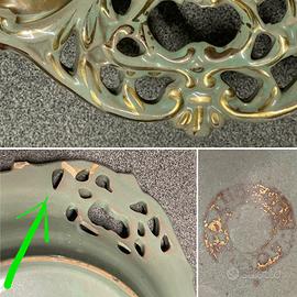Centrotavola ceramica decorato fiorellini - anni 50 - opalescente /verde salvia / dorato / perlato - (il Piatto misura 33 dia.)