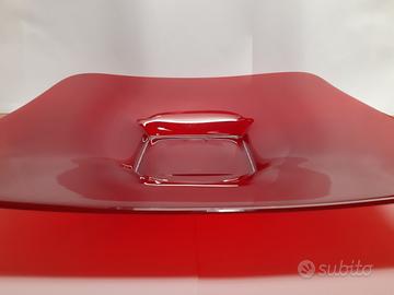 Piatto decorativo, centrotavola o portafrutta, in vetro rosso dipinto, 36x36 cm circa.