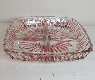 Vendo Piatto da aperitivo in cristallo colorato con scomparti - aperitivo francese, piatto da portata vintage degli anni '70 dimensione 22 cm x 22 cm