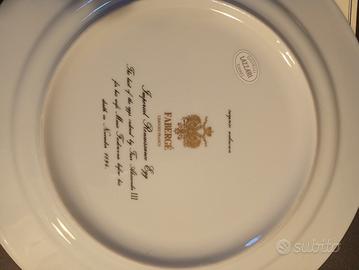 Piatto in porcellana con dettagli in oro. Fa parte della collezione uovo imperiale Fabergè. Non è più in produzione. (largo 28 cm)