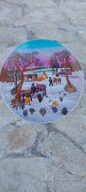 Piatto da parete in porcellana "Leonardo" lux Rappresenta la stagione invernale. Diametro 20.5 cm