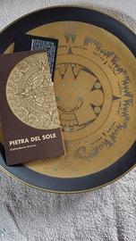 Vendo prezioso piatto (da parete)"Pietra del sole"calendario Azteca,del laboratorio Morbelli,in fine porcellana incisa e decorata con oro zecchino 24k più inserti di smalto e platino del 1960.No spedizione