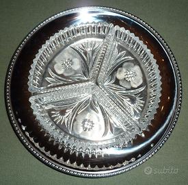 Piatto da portata 3 scomparti acciaio e cristallo cm 29 - usato - vintage