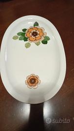 piatto da portata ovale in ceramica con decoro floreale. Vintage.