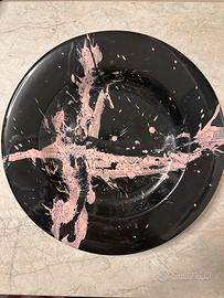 Piatto in ceramica decorato a mano 40cm di diametro firmato Gigina 1987