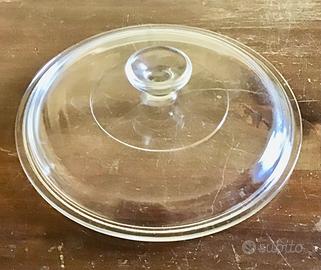 Elegante piatto da portata / insalatiera con coperchio in vetro con bordo argentato (silver-plate) della nota ditta argentiera bresciana Sheratonn.