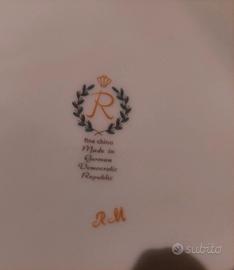 PIATTO DA DOLCE IN PORCELLANA VINTAGE ROSENTHAL R CON CORONA, FINE CHINA GERMAN DEMOCRATIC REPUBLIC BORDO ORO 18 KT,