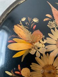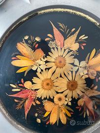 Piatto con fiori veri essiccati e messi sotto vetro Il piatto é da appendere a parete Made in Switzerland Quadro da muro, soprammobile, collezione