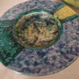 Piatto decorativo in ceramica di Vietri, con tecnica di sovrapposizione di smalti, realizzato e firmato dall' artista ceramista Ceramiche di Vietri ( Italy )