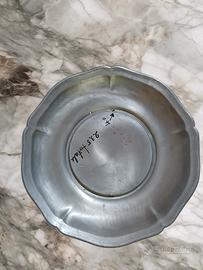 Piatto in peltro con scena a rilievo "Bambino con grappolo d'uva" firmato F. Corth 77 Bellissimo piatto decorativo in peltro (lega zinco/peltro) di forma lobata (bordo a 8-10 petali arrotondati). Al centro è presente un medaglione circolare con un putto/bambino seduto che tiene in mano un grappolo d’uva, in stile classico/neo-rinascimentale. Sul bordo quattro eleganti motivi floreali a rilievo. Sul retro è chiaramente visibile la firma “F. Corth 77” (1977) e alcune scritte a pennarello (probabilmente prezzo o codice di magazzino, facilmente rimovibili). Dettagli: Diametro circa 30-32 cm (misura standard per questo tipo di piatti da parete) Bordo sagomato e decorato Ottima patina grigio-argento uniforme Può essere appeso o usato come centrotavola decorativo Si tratta di un pezzo vintage degli anni ’70, di produzione europea (probabilmente tedesca o italiana su disegno classico). Questo stile con putti e motivi fruttati era molto comune nell’oggettistica in peltro del periodo, spesso usata per arredamento rustico, country o come regalo. Condizioni: Ottimo stato generale, nessun danno, ammaccature o restauri visibili. Solo normale patina d’epoca e qualche piccola traccia d’uso. Perfetto per chi colleziona peltro, oggetti da parete vintage, o per completare un arredamento in stile classico/rinascimentale. Si abbina bene al precedente piatto con la scena dei giocatori di carte. Spedizione possibile con imballo rinforzato o ritiro a mano.