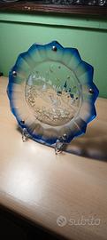 Piatto decorativo natalizio in vetro satinato e contornati da bottoni d'argento di Walther Glas. Della Valenti