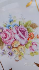 piatto in porcellana di Limoges prodotto in Francia con disegni floreali e riporti in oro