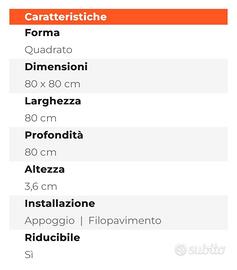 Piatto doccia nuovo Confezione originale Acquistato per errore 80x80 Tutte le info in foto :) 100 euro