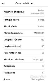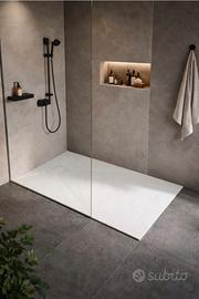 Acquistato e ancora imballato. In seguito tutta la descrizione. Piatto doccia resina CUBA Piatto doccia in resina 80x120 cm SMC effetto pietra colore bianco CUBA Un piatto doccia in resina effetto pietra bianco è l'equilibrio perfetto tra scienza e bellezza. La resina, ottenuta dalla miscelazione chimica di due componenti, nasce come un liquido dalla consistenza vischiosa e si trasforma, a contatto con l'aria, in un materiale termoindurente: solido, compatto, affidabile. Una metamorfosi che dà vita a una superficie materica, elegante e sorprendentemente naturale al tatto. Il suo bianco puro illumina lo spazio e amplifica la sensazione di ordine e armonia. La struttura sottostante, vuota a nido d'ape, custodisce un'anima leggera ma intelligente: prima della posa deve essere riempita con malta cementizia o schiuma poliuretanica, seguendo queste indicazioni non ci sarà mai alcun problema e diventerà un corpo unico, stabile e resistente nel tempo. Senza bordo, essenziale nelle linee, può essere installato sia in appoggio sia filo pavimento, per un effetto continuo e contemporaneo. Reversibile, riducibile, dotato di superficie antiscivolo e antibatterica, offre sicurezza e comfort in ogni dettaglio. La cover copri-piletta è inclusa per un'estetica pulita e minimale, mentre la piletta di scarico non è inclusa, lasciando libertà di scelta. È più di un elemento funzionale: è una base solida su cui costruire ogni giorno il proprio rituale di benessere. Le immagini sono rendering a scopo illustrativo. Caratteristiche tecniche piatto: Resina Struttura sottostante vuota Da riempire Montaggio appoggio e filo pavimento Riducibile Altezza 2.6cm Copri-piletta incluso Piletta non inclusa Effetto pietra Bianco RAL 9010 misura 80x120