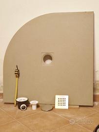 Piatto doccia semicircolare 90x90 in resina. Vendo perché nn mi è più possibile montarlo nel mio bagno x problemi di misure. Ha un piccolissimo difetto, come si vede da foto, stuccato e levigato, dovuto al trasporto e comunque è in quella zona dove si monta il box. Con piletta completa da 9 cm con copri piletta e griglia in metallo. Prezzo del nuovo oltre 280 euro. Vendo a 170 euro. Eventuale ritiro a Ribolla (GR). Non spedisco e nn trasporto.