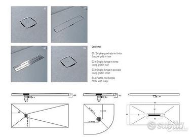 Possibilità di taglio personalizzato, di bordino (1 cm) sul perimetro del piatto doccia e griglia ceramica della stessa colorazione del piatto.