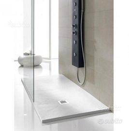 Piatto doccia effetto pietra colore bianco, superficie antiscivolo. Ultra slim alto solo 2.8 cm con griglia in acciaio inox e piletta compresa nel prezzo. Installabile anche a filo pavimento.