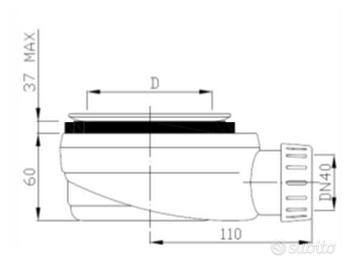 La piletta di scarico ribassata da 6 cm di altezza e 9cm di foro con capacità di scarico di 42 litri/minuto e la griglia in acciaio inox sono comprese nel prezzo