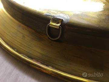 E’ rimasto dimenticato in un vecchio baule per circa 40 anni, tutto inciso pazientemente a mano. Dimensioni generose: diametro 38 cm circa. E’ presente gancio per appenderlo.