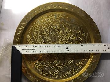 Piatto decorativo in ottone realizzato a mano, nuovo mai usato. In stile Arabo.