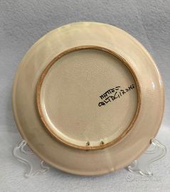 Piatto in ceramica di Caltagirone, con marchio sul retro e buchi per poterlo appendere