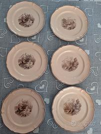 Il prezzo si riferisce alla collezione di 6 piatti (prima foto) la seconda foto mostra il diametro 25,5cm e la comparazione con un foglietto bianco.
