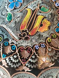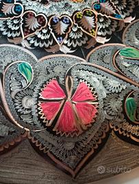Piatto decorativo da parete in rame cesellato e smaltato diametro 37 cm