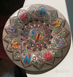 Piatto in rame cesellato e smaltato