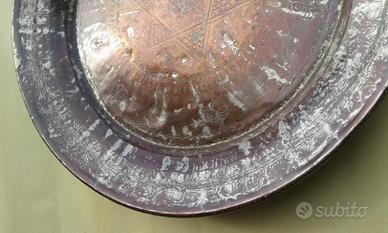 Grande piatto in rame da appendere per arredamento , con bellissimo disegno interno (vedi foto). In perfette condizioni senza danni . Diametro cm 65,5 profondità cm. 6 Trasporto a carico acquirente . Solo contatto telefonico :chiamata/sms/whatsApp