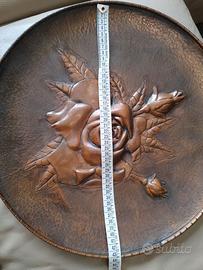 grande piatto decorativo da parete in rame sbalzato 43 cm lavorazione artigianale. vintage. motivo floreale.