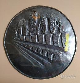 Piatto decorativo in rame, lavorato a sbalzo.