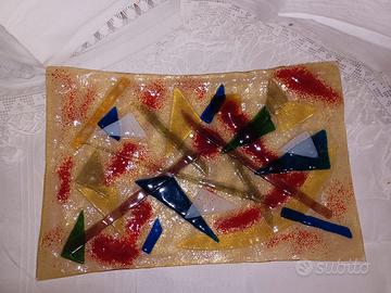 Bellissimo piatto in VETROFUSIONE ARTISTICA. OGGETTO ARTIGIANALE. PEZZO UNICO FRANCESCA 39×26