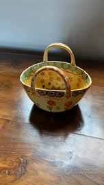 Piatto dipinto a mano manifattura Italica Ars di Lastra a Signa da attaccare al muro gia montato su struttura in ferro rimovibile fatta da artigiano. Piatto diametro 50 cm. Piatto corredato di cestino porta tutto. Stesso motivo decorativo. Prezzo comprende entrambi oggetti ed è trattabile.